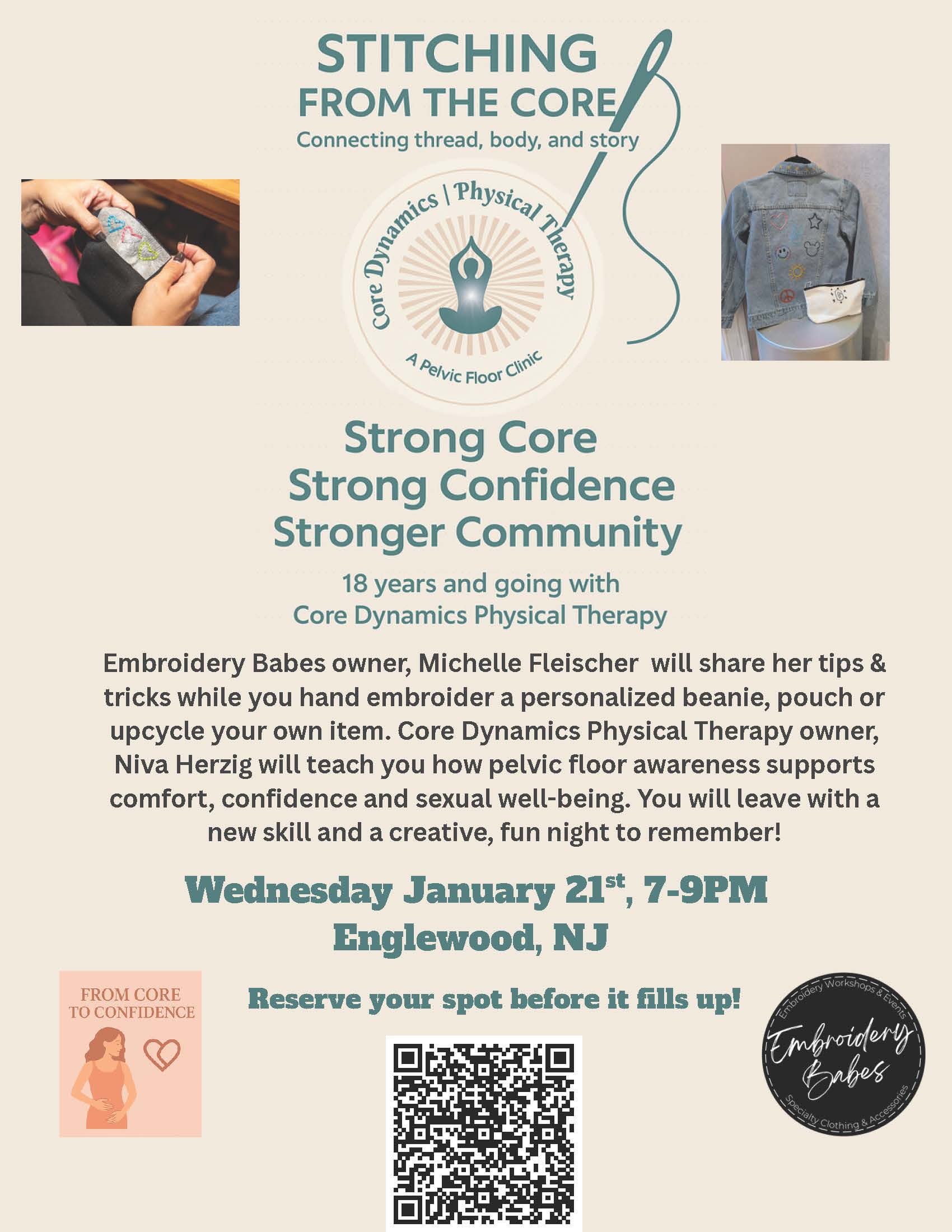 Hosted by Core Dynamics Physical Therapy & Embroidery Babes Join us for a unique and empowering evening that connects creativity with wellness at "Stitching From the Core" — a hands-on event designed to bring together thread, body, and story. 🧵 What to Expect: Learn hand embroidery techniques with Michelle Fleischer, owner of Embroidery Babes, as […]